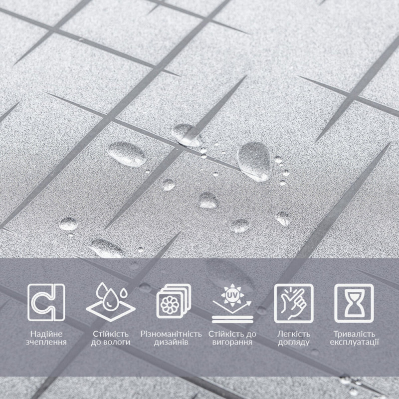 • ПВХ - це стійкий до вологи матеріал, не підлягає корозії та легко очищається, що забезпечує тривалий термін служби.