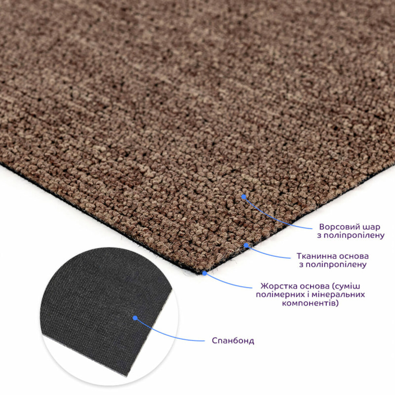 Ковролін у плитках складається з наступних шарів: