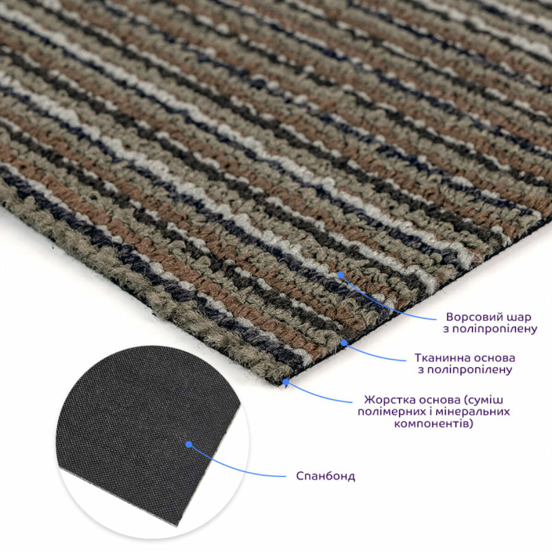 Ковролін у плитках складається з наступних шарів: