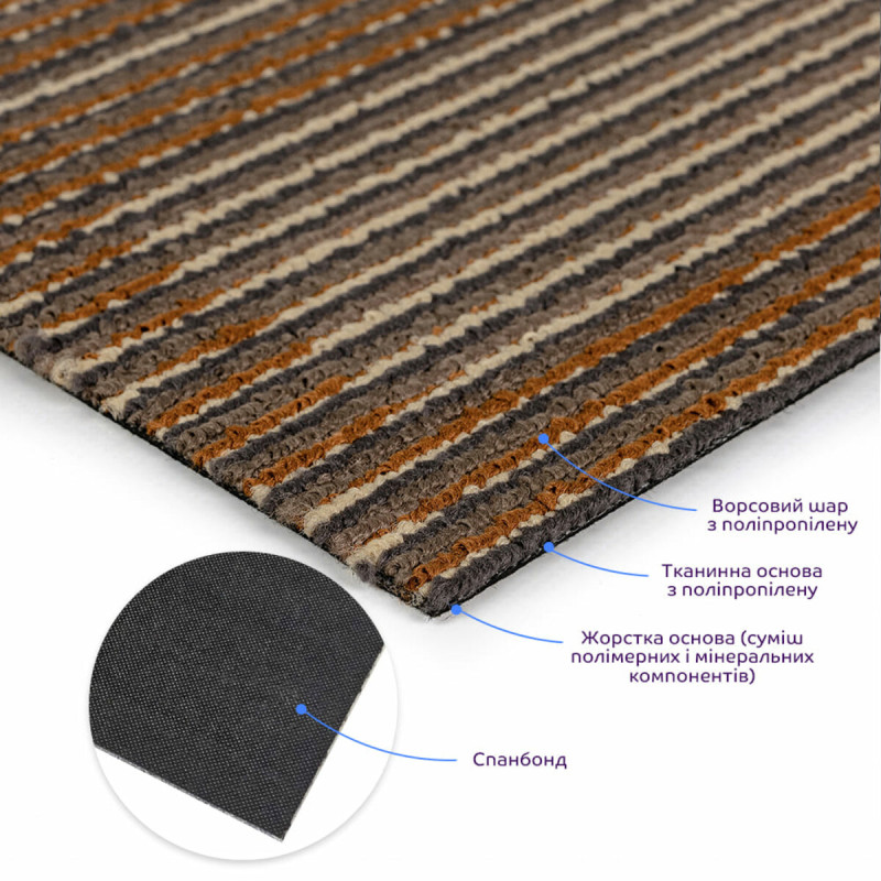 Ковролін у плитках складається з наступних шарів: