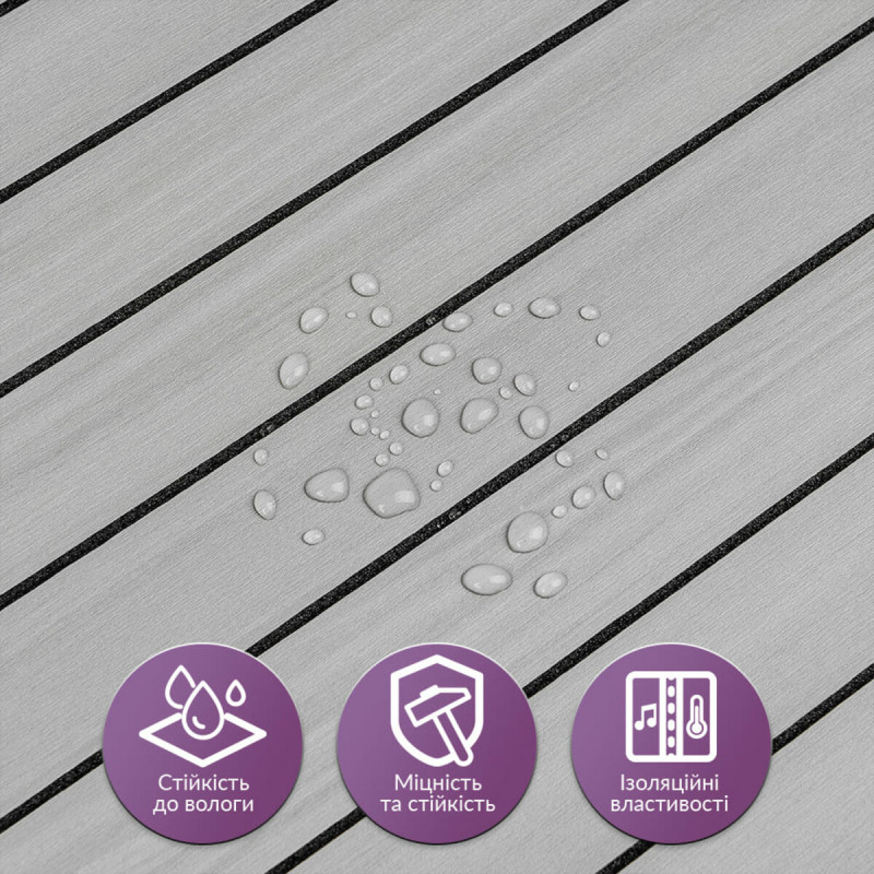 • Легкий догляд: Вінілові рейки легко миються, не вимагають спеціальних засобів для очищення і не вбирають бруд.