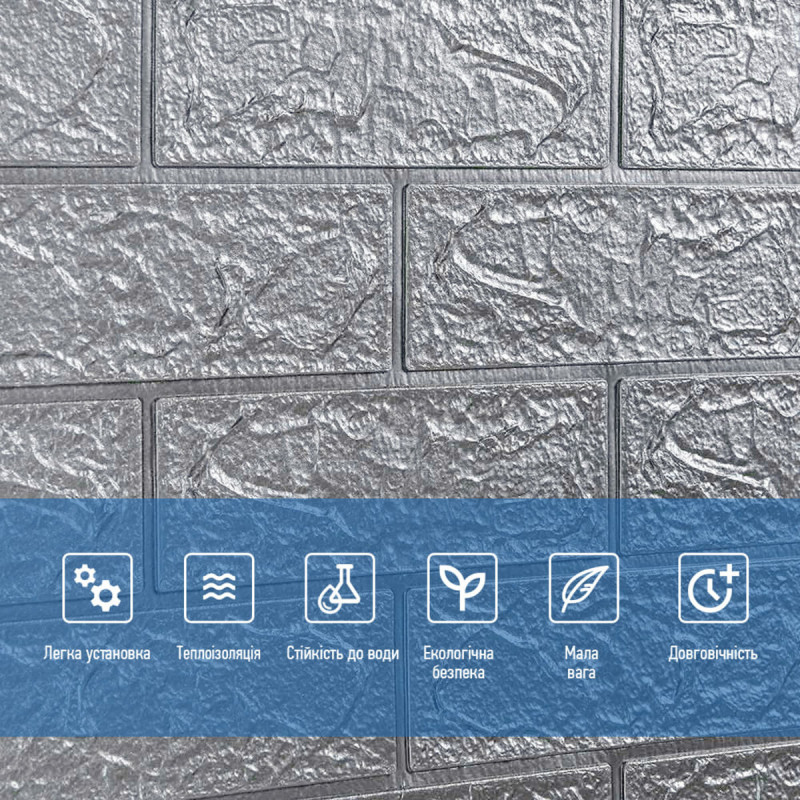 Самоклеюча 3D панель під срібну цеглу в рулоні 19600x700x2мм