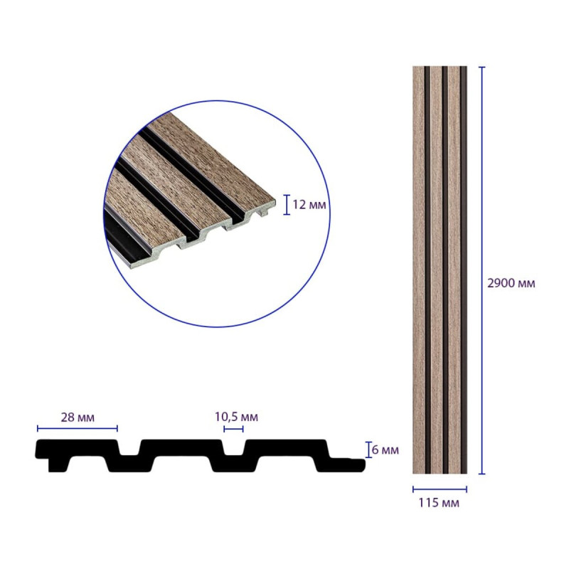 Рейка декоративна PS 2900х115х12мм Сіро-коричневий SW-00001744