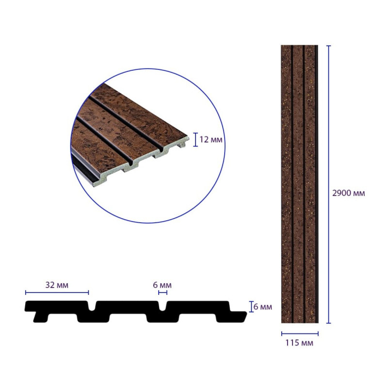 - Площа покриття: 115х2900х12 мм – 0,34 м², кількість на 1 м² – 3 одиниці.