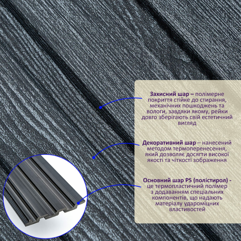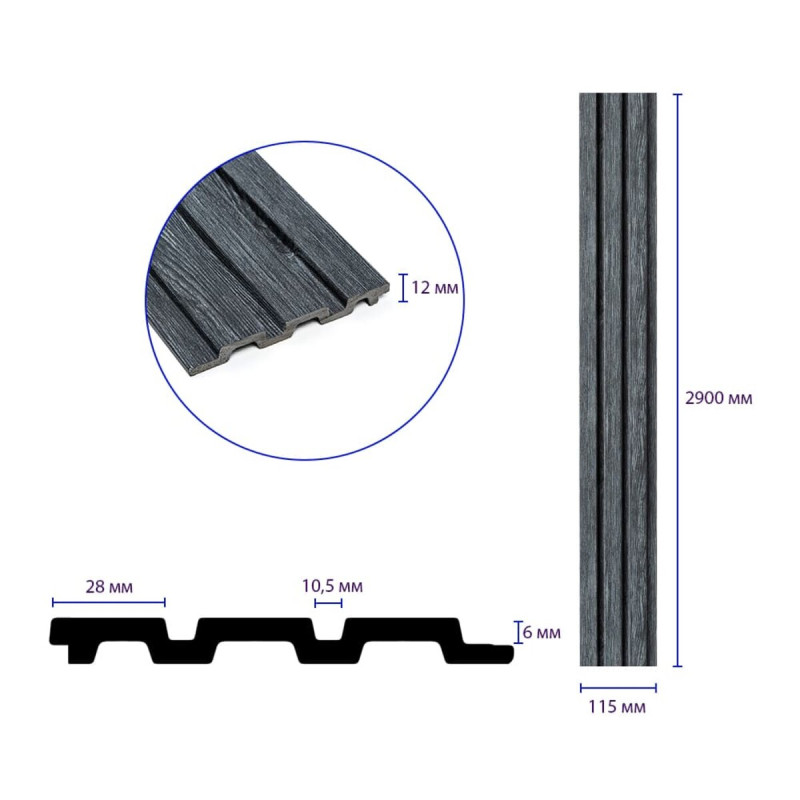 Рейка декоративна PS 2900х115х12мм Темний графіт SW-00002128