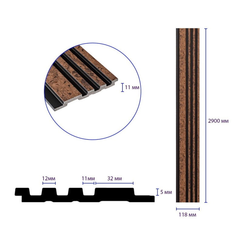 - Розміри: 118х2900х11 мм
