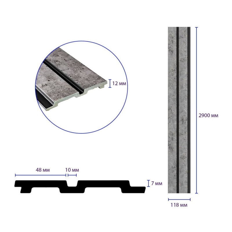- Площа покриття: 118х2900х12 мм – 0,34 м², кількість на 1 м² – 3 одиниці.