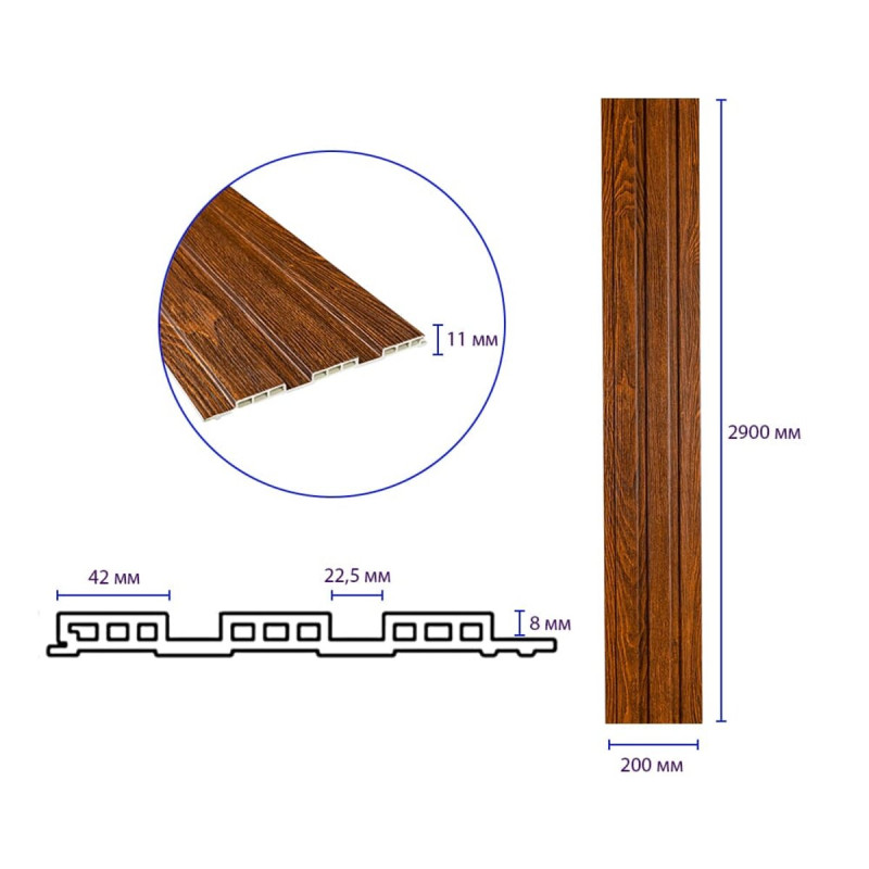 Опис: Стінові рейки WPC – будівельний матеріал для внутрішнього оздоблення, що імітує натуральну деревину.
