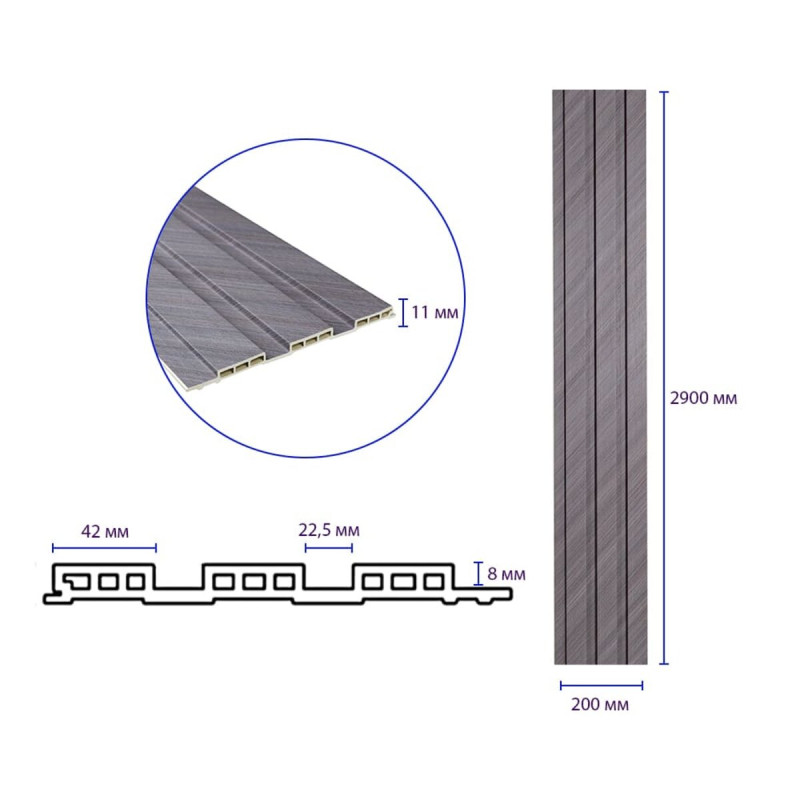 Опис: Стінові рейки WPC – будівельний матеріал для внутрішнього оздоблення, що імітує натуральну деревину.