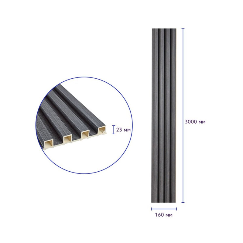 Рейка декоративна WPC стінова 3000х160х23мм Графіт SW-00001529