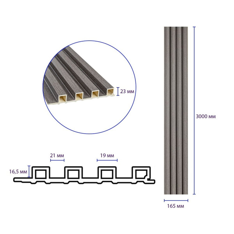Рейка декоративна WPC стінова 3000х165х23мм Олов'яний SW-00001530