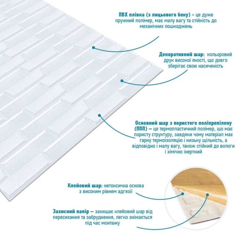 Самоклеюча 3D панель 3080x700x5мм Біла Кладка SW-00001759