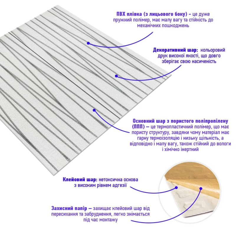 Самоклеюча 3D панель цегла срібні стрічки 700х700х5мм (441)(допустима похибка-3%)