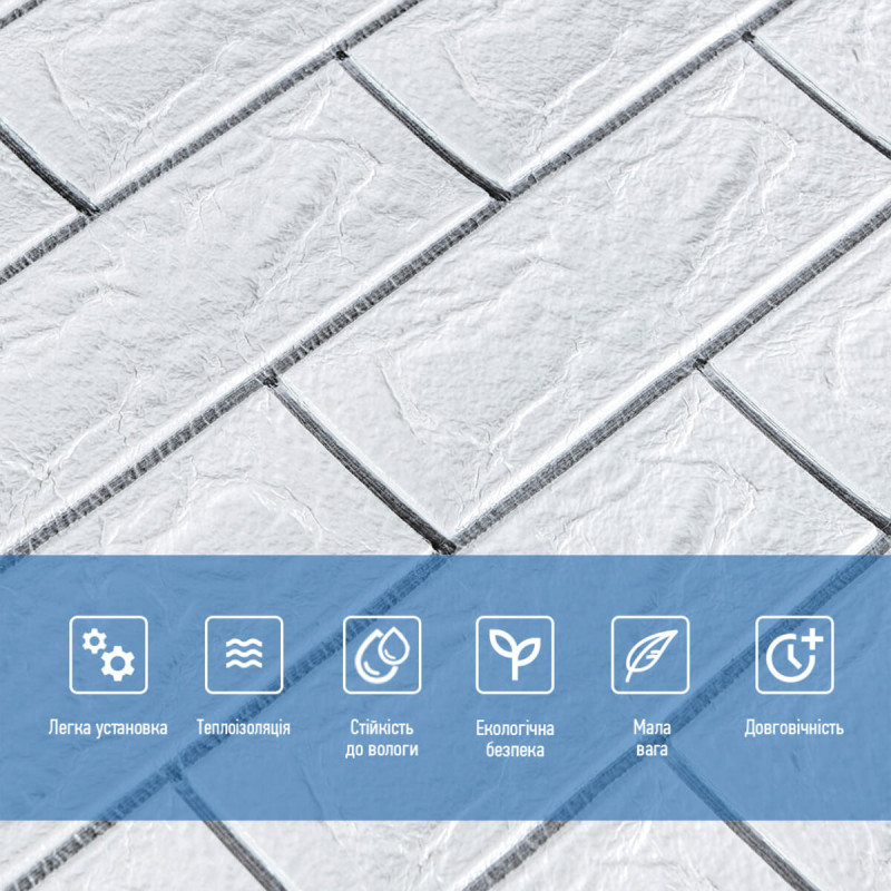 Самоклеюча 3D панель 700х770х5мм Біла цегла смужка срібло (100-5) SW-00000753