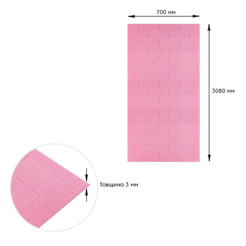 Самоклеюча 3D панель під Рожеву Цеглу 3080x700x3мм SW-00001757