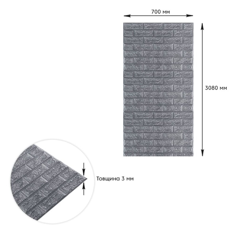 Самоклеюча 3D панель під срібну цеглу в рулоні 3080x700x3мм (R017-3)