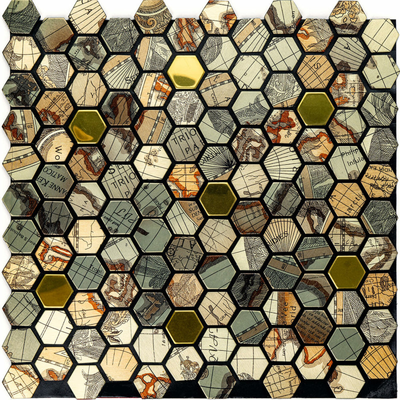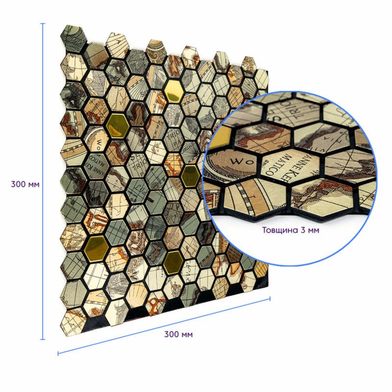 Самоклеюча алюмінієва плитка 300х300х3мм Золота луска SW-00001934