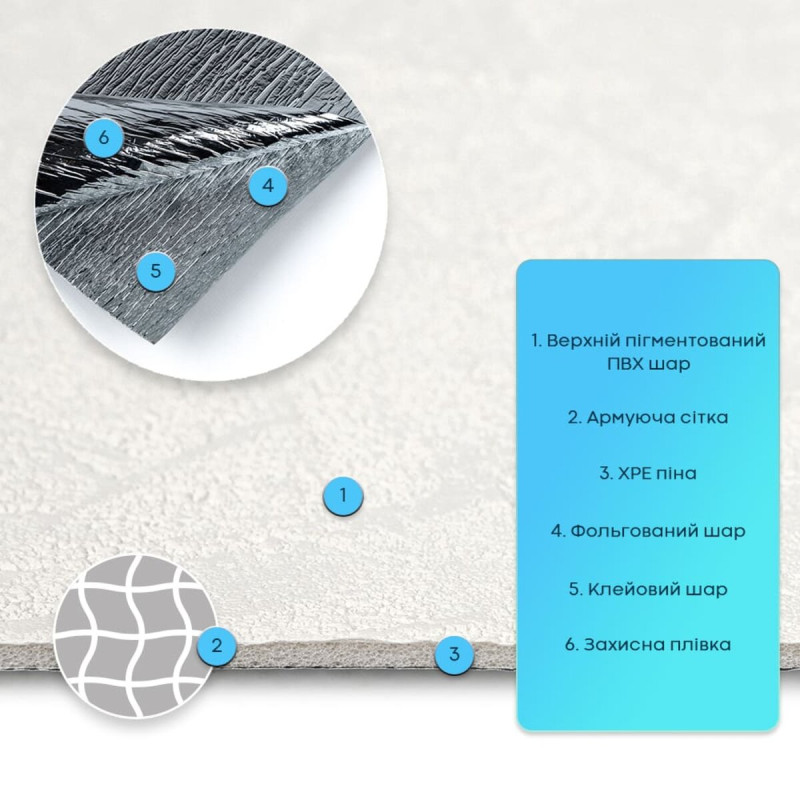 • Екологічна безпека Матеріал виготовляється з безпечної сировини, не виділяє шкідливих речовин, підходить для житлових приміщень та є нетоксичним для навколишнього середовища.