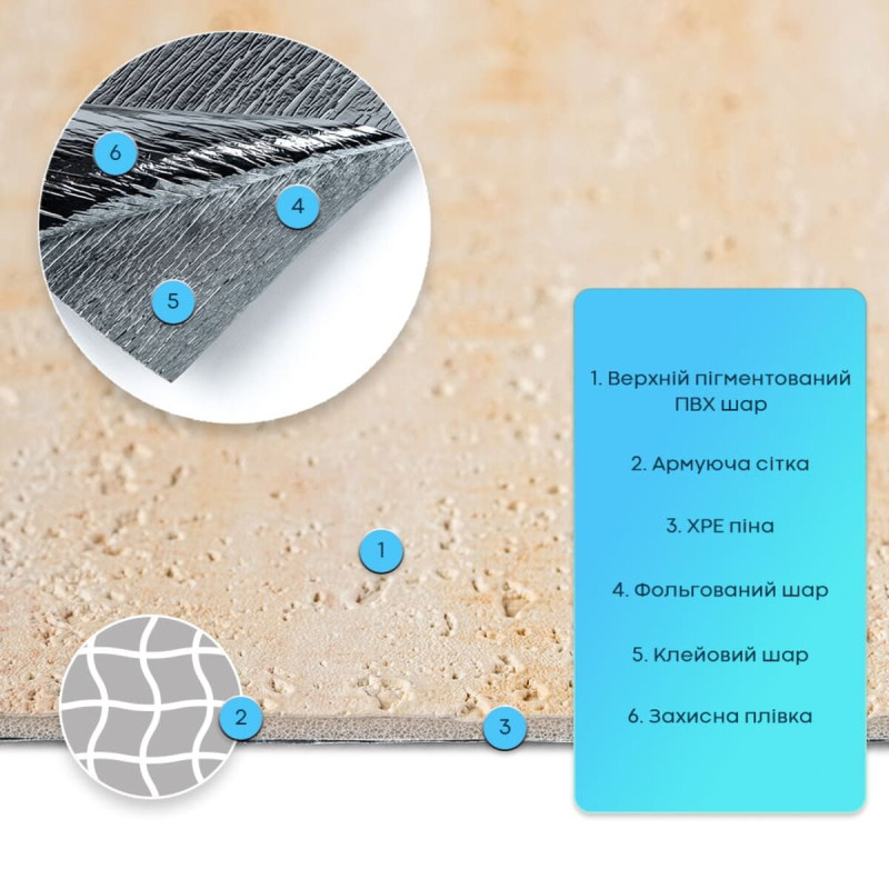 • Екологічна безпека Матеріал виготовляється з безпечної сировини, не виділяє шкідливих речовин, підходить для житлових приміщень та є нетоксичним для навколишнього середовища.