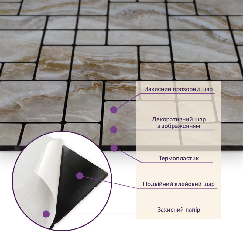 Зняти захисну плівку зі зворотного боку плитки, щоб відкрити клейку поверхню.