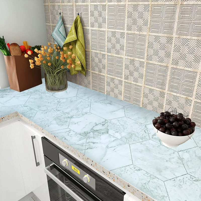 Самоклеюча плівка на основі папіру нефритовий мармур срібні соти 0,45х10м