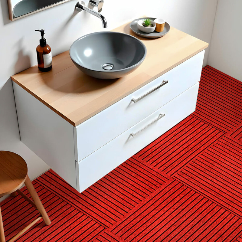 • Звукоізоляція: ковролінова плитка зменшує поширення звуків у приміщенні, роблячи його тихішим і спокійнішим, що особливо важливо у багатоквартирних будинках та офісах