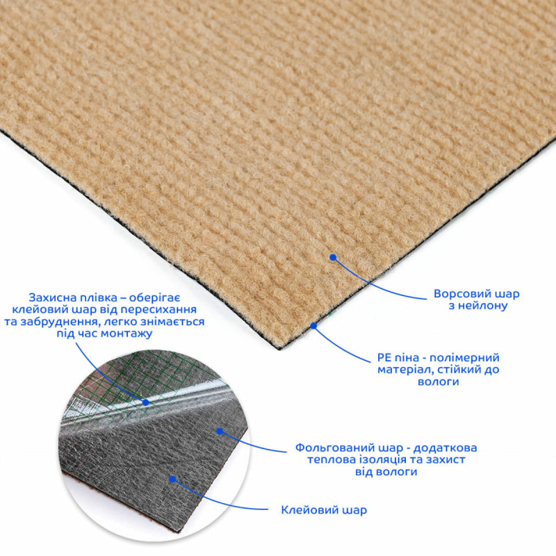 Самоклеюча плитка під ковролін в рулоні бежевий 600х3000мм SW-00002583
