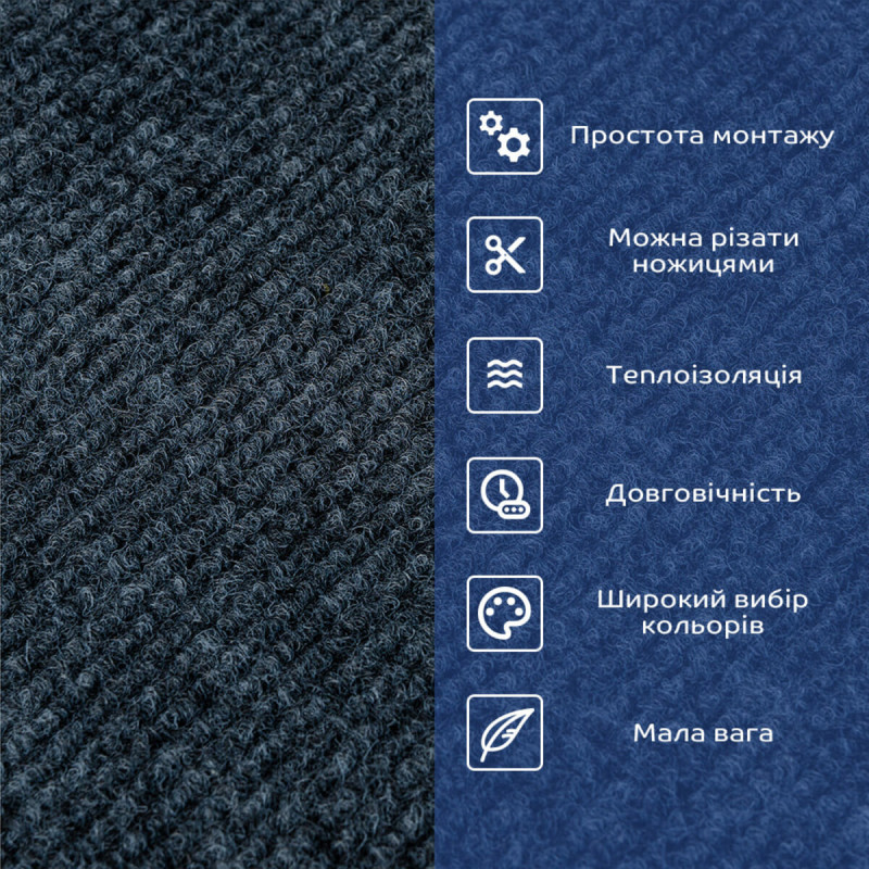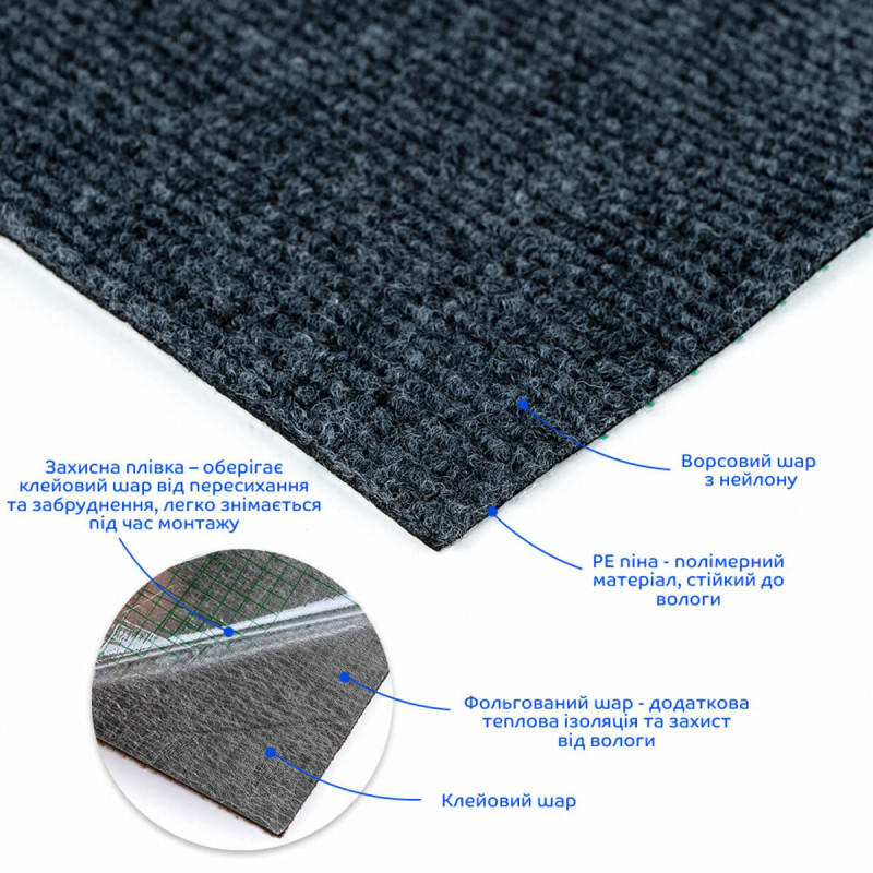 Самоклеюча плитка під ковролін в рулоні темно-сірий 600х3000мм SW-00002587