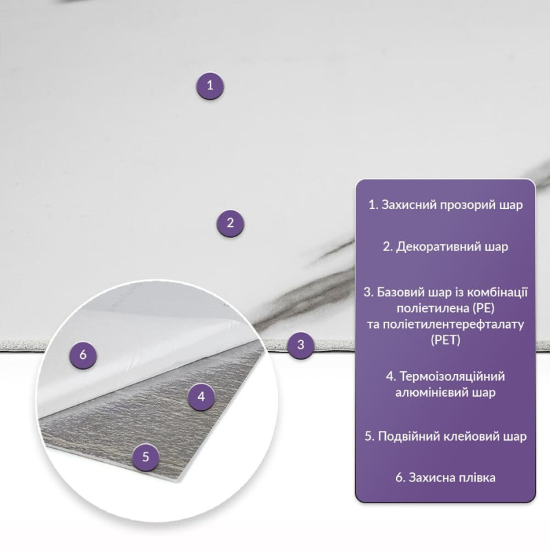 - 3. Ізоляція: плитка має звукову та теплоізоляцію завдяки наявності повітряних прошарків та додатковому алюмінієвому шару;