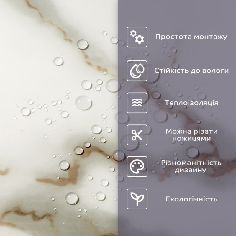 - 2. Стійкість до вологи: матеріал стійкий до впливу вологи та пари, а також до появи плісняви, що робить його придатним для використання у приміщеннях з високою вологістю, таких як ванни та кухні. Плитка підходить для створення фартуха кухні, можна клеїти біля плити на відстані не менше ніж 20-25 см;