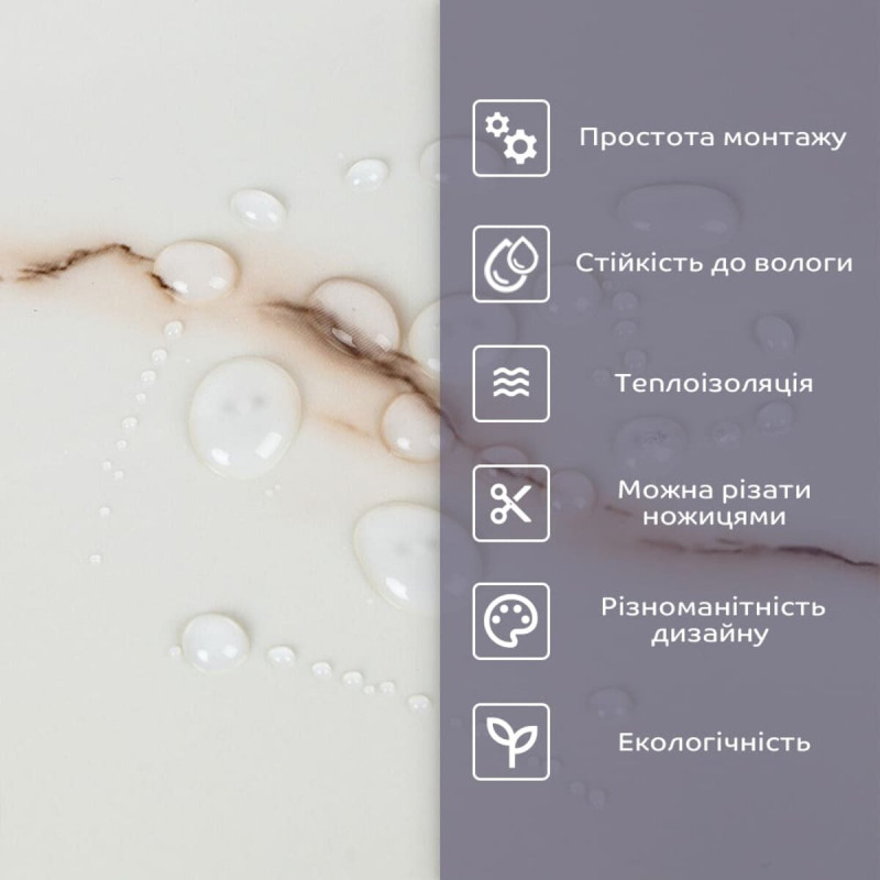 - 2. Стійкість до вологи: матеріал стійкий до впливу вологи та пари, а також до появи плісняви, що робить його придатним для використання у приміщеннях з високою вологістю, таких як ванни та кухні. Плитка підходить для створення фартуха кухні, можна клеїти біля плити на відстані не менше ніж 20-25 см;
