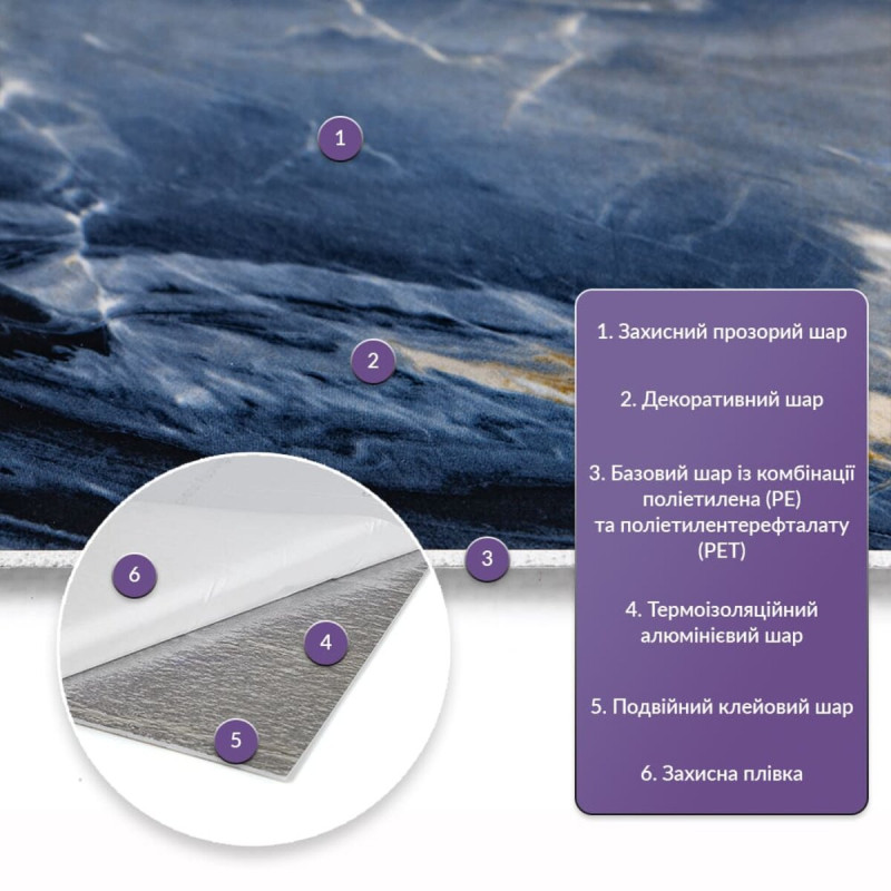 - 3. Ізоляція: плитка має звукову та теплоізоляцію завдяки наявності повітряних прошарків та додатковому алюмінієвому шару;