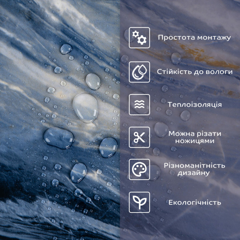 - 2. Стійкість до вологи: матеріал стійкий до впливу вологи та пари, а також до появи плісняви, що робить його придатним для використання у приміщеннях з високою вологістю, таких як ванни та кухні. Плитка підходить для створення фартуха кухні, можна клеїти біля плити на відстані не менше ніж 20-25 см;