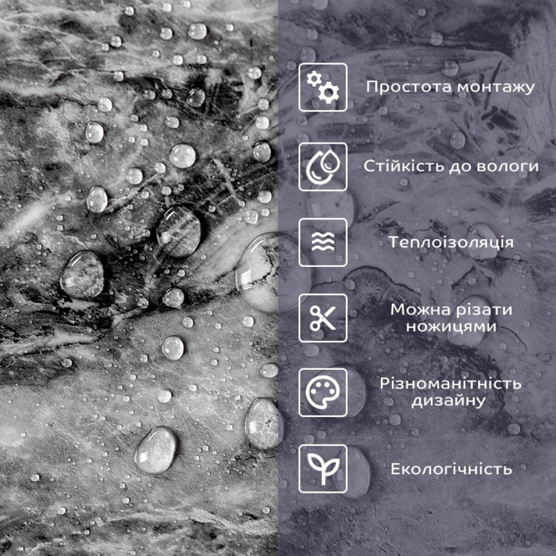 - 2. Стійкість до вологи: матеріал стійкий до впливу вологи та пари, а також до появи плісняви, що робить його придатним для використання у приміщеннях з високою вологістю, таких як ванни та кухні. Плитка підходить для створення фартуха кухні, можна клеїти біля плити на відстані не менше ніж 20-25 см;