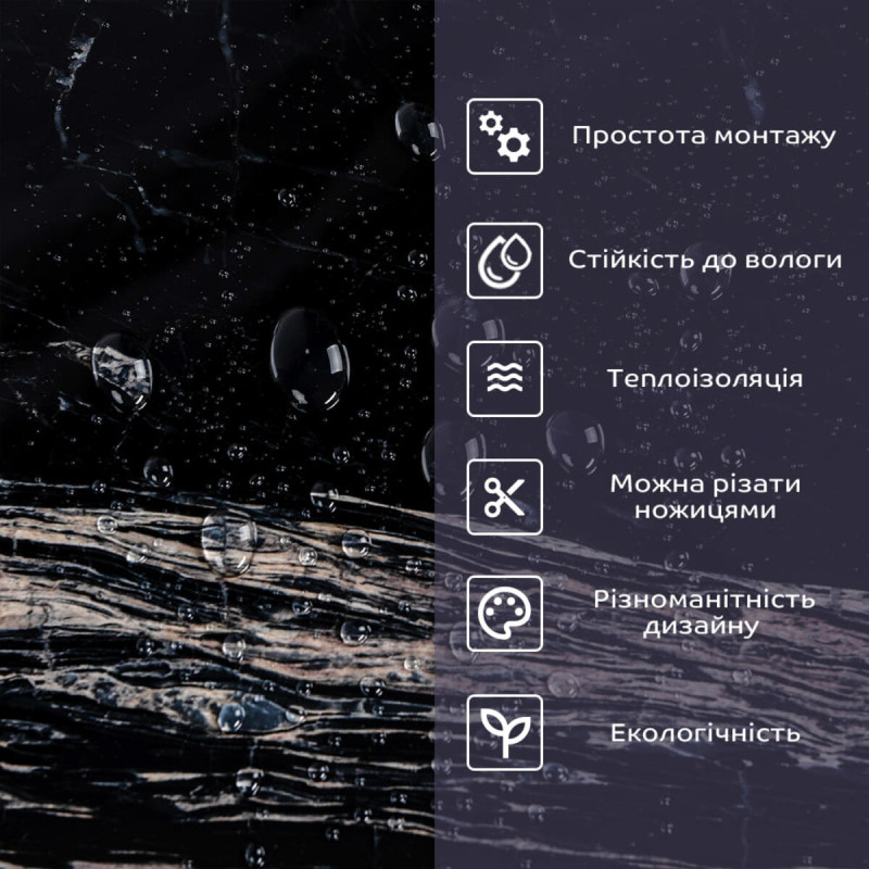 - 2. Стійкість до вологи: матеріал стійкий до впливу вологи та пари, а також до появи плісняви, що робить його придатним для використання у приміщеннях з високою вологістю, таких як ванни та кухні. Плитка підходить для створення фартуха кухні, можна клеїти біля плити на відстані не менше ніж 20-25 см;
