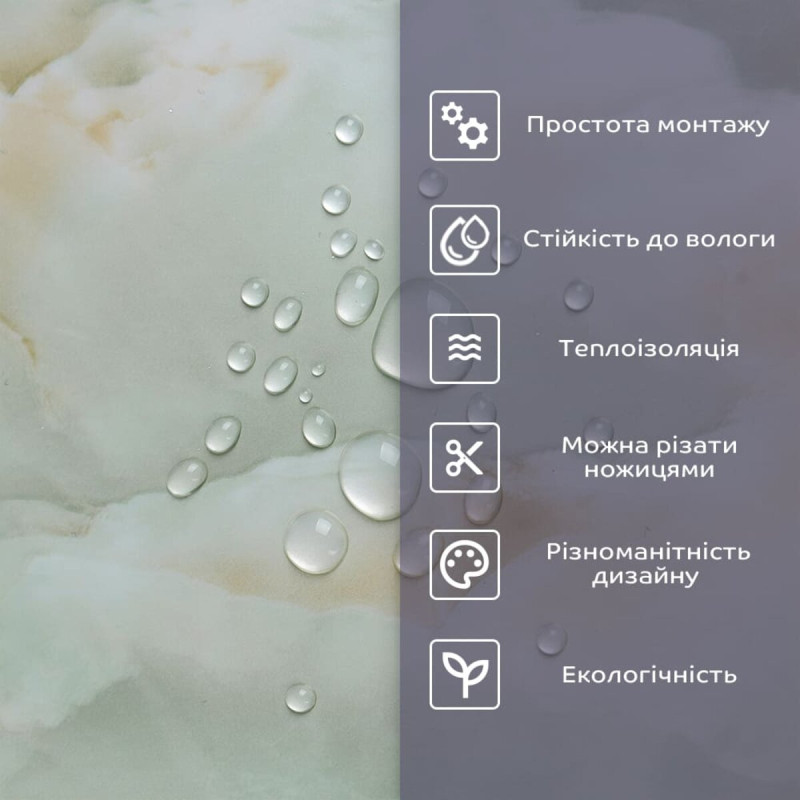 - 2. Стійкість до вологи: матеріал стійкий до впливу вологи та пари, а також до появи плісняви, що робить його придатним для використання у приміщеннях з високою вологістю, таких як ванни та кухні. Плитка підходить для створення фартуха кухні, можна клеїти біля плити на відстані не менше ніж 20-25 см;