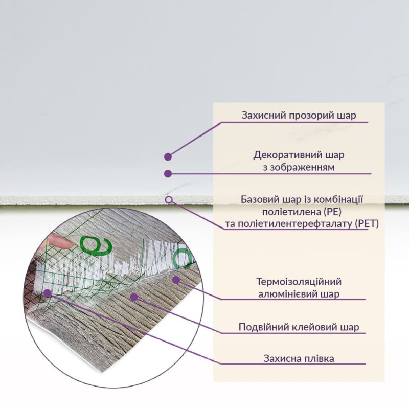 - 3. Ізоляція: плитка має звукову та теплоізоляцію завдяки наявності повітряних прошарків та додатковому алюмінієвому шару;
