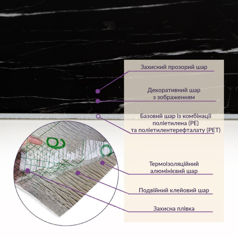 • Базовий шар з комбинації поліетилена (PE) і поліетилентерефталату (PET)