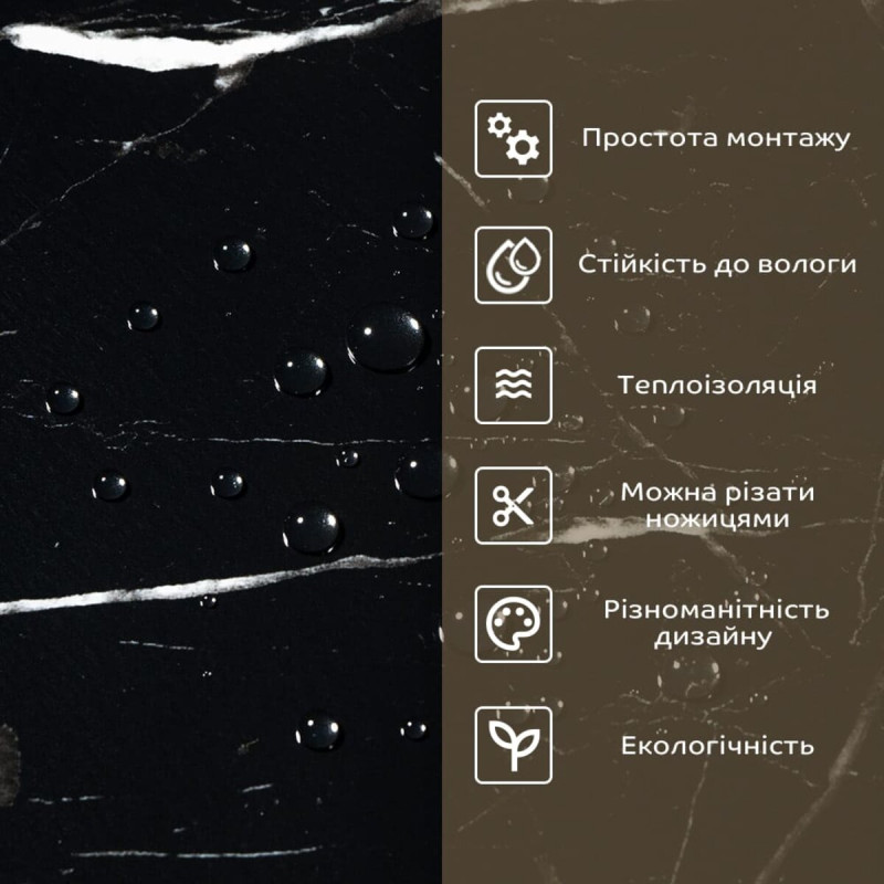 • 2. Стійкість до вологи: матеріал стійкий до впливу вологи та пари, а також до появи плісняви, що робить його придатним для використання у приміщеннях з високою вологістю, таких як ванни та кухні. Плитка підходить для створення фартуха кухні, можна клеїти біля плити на відстані не менше ніж 20-25 см;