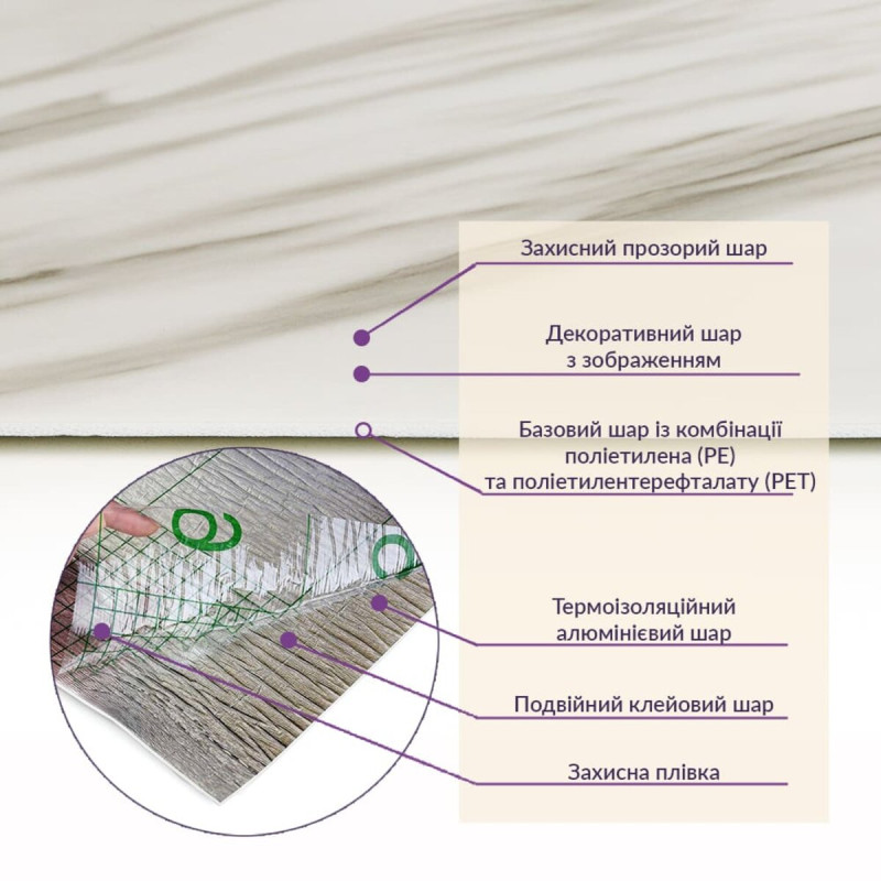 - 3. Ізоляція: плитка має звукову та теплоізоляцію завдяки наявності повітряних прошарків та додатковому алюмінієвому шару;