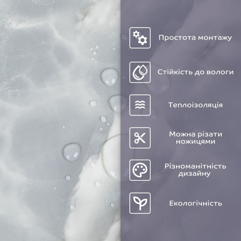 - 2. Стійкість до вологи: матеріал стійкий до впливу вологи та пари, а також до появи плісняви, що робить його придатним для використання у приміщеннях з високою вологістю, таких як ванни та кухні. Плитка підходить для створення фартуха кухні, можна клеїти біля плити на відстані не менше ніж 20-25 см;