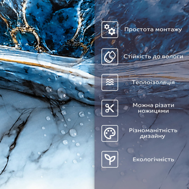 - 2. Стійкість до вологи: матеріал стійкий до впливу вологи та пари, а також до появи плісняви, що робить його придатним для використання у приміщеннях з високою вологістю, таких як ванни та кухні. Плитка підходить для створення фартуха кухні, можна клеїти біля плити на відстані не менше ніж 20-25 см;