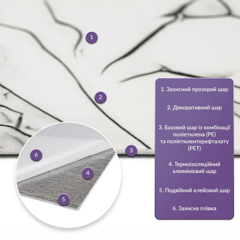 - 3. Ізоляція: плитка має звукову та теплоізоляцію завдяки наявності повітряних прошарків та додатковому алюмінієвому шару;