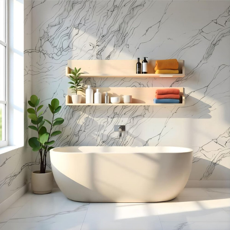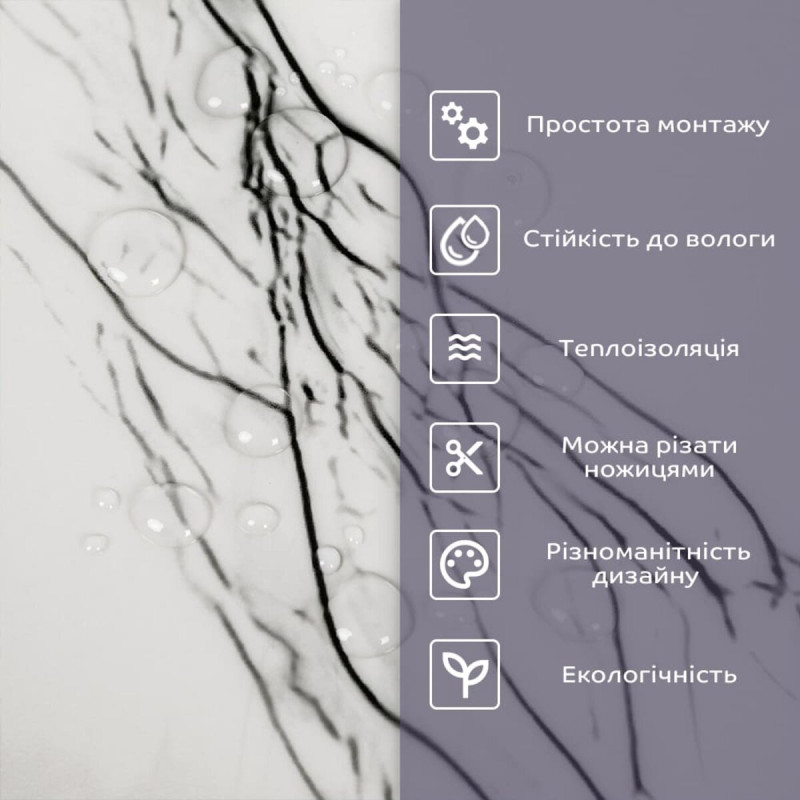 - 2. Стійкість до вологи: матеріал стійкий до впливу вологи та пари, а також до появи плісняви, що робить його придатним для використання у приміщеннях з високою вологістю, таких як ванни та кухні. Плитка підходить для створення фартуха кухні, можна клеїти біля плити на відстані не менше ніж 20-25 см;