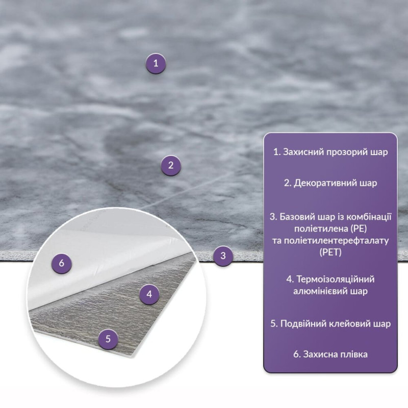 - 3. Ізоляція: плитка має звукову та теплоізоляцію завдяки наявності повітряних прошарків та додатковому алюмінієвому шару;
