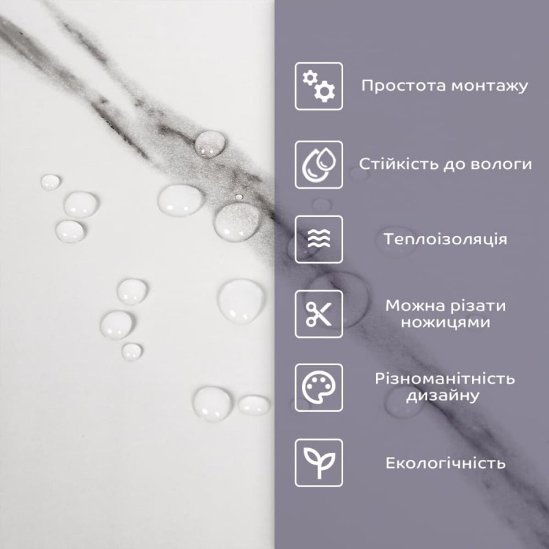 - 2. Стійкість до вологи: матеріал стійкий до впливу вологи та пари, а також до появи плісняви, що робить його придатним для використання у приміщеннях з високою вологістю, таких як ванни та кухні. Плитка підходить для створення фартуха кухні, можна клеїти біля плити на відстані не менше ніж 20-25 см;