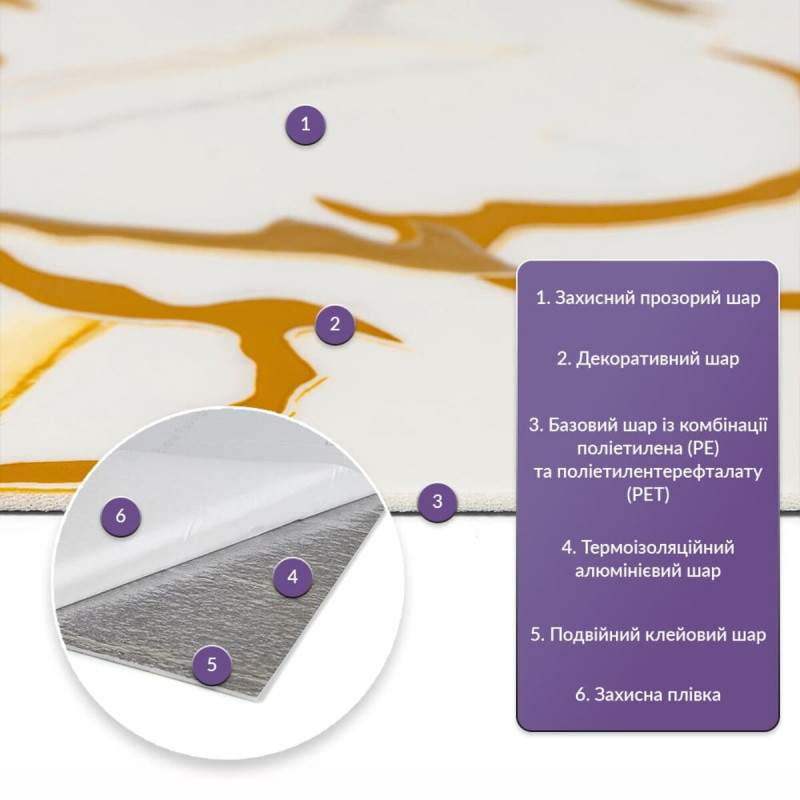 - 3. Ізоляція: плитка має звукову та теплоізоляцію завдяки наявності повітряних прошарків та додатковому алюмінієвому шару;