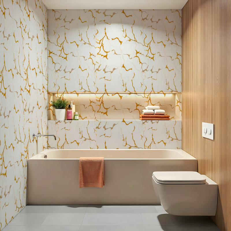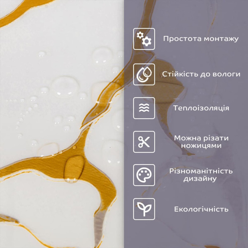 - 2. Стійкість до вологи: матеріал стійкий до впливу вологи та пари, а також до появи плісняви, що робить його придатним для використання у приміщеннях з високою вологістю, таких як ванни та кухні. Плитка підходить для створення фартуха кухні, можна клеїти біля плити на відстані не менше ніж 20-25 см;