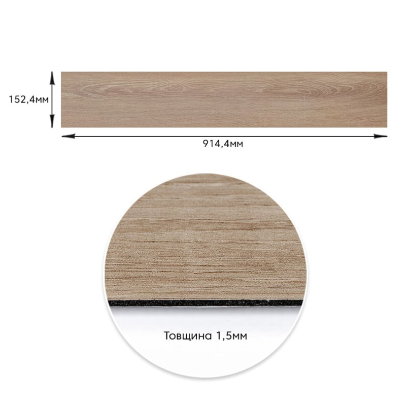 Самоклеюча вінілова плитка 152.4х914.4х1.5мм Дуб молочний, ціна за 1 шт. (СВП-010) Матова SW-00001129