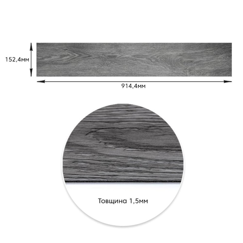 Самоклеюча вінілова плитка 152.4х914.4х1.5мм Попелясте дерево, ціна за 1 шт. (СВП-003) Матова SW-00000284